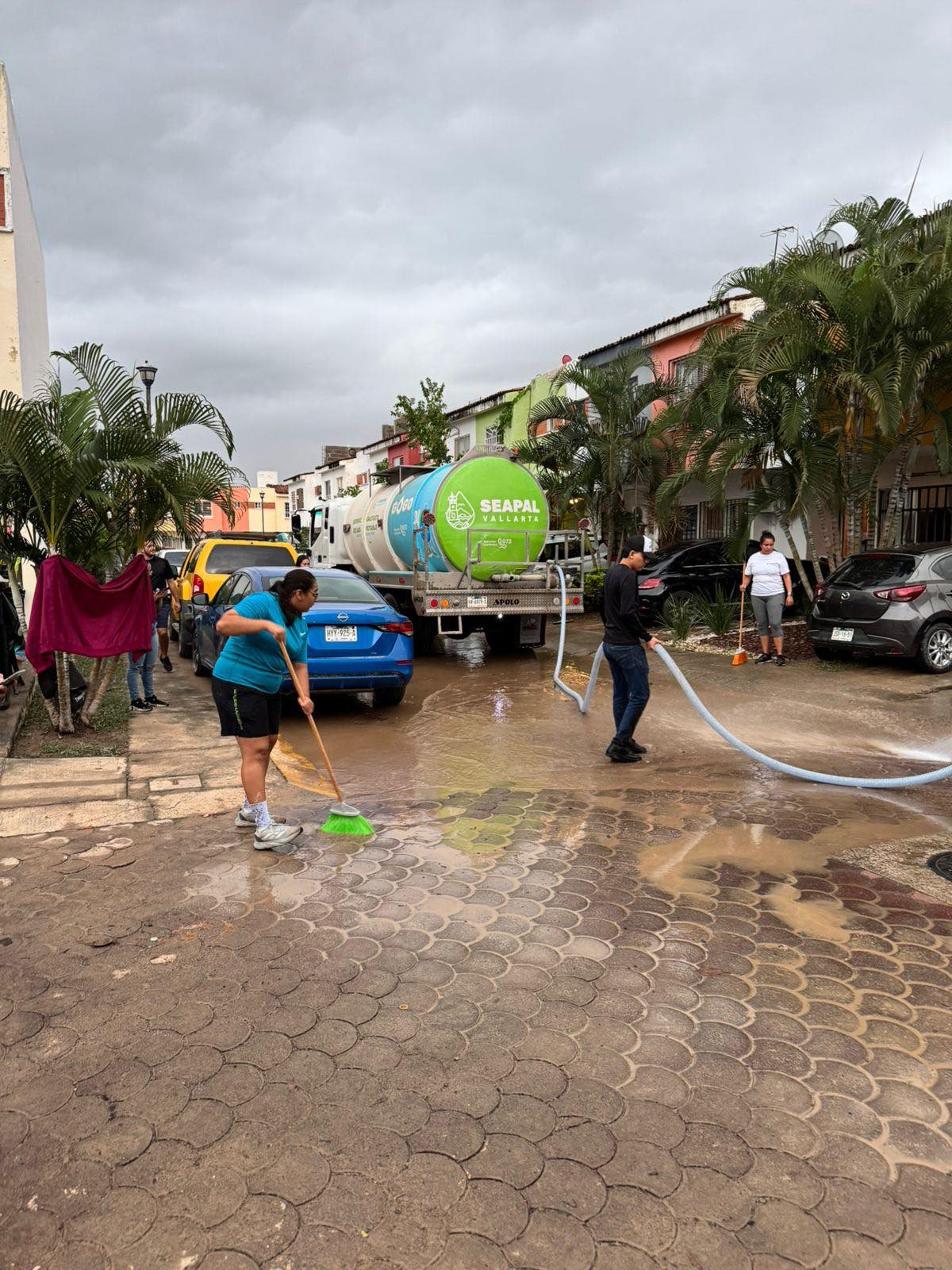 SEAPAL Vallarta apoyó en las labores de limpieza en la colonia Parque Las Palmas, tras la intensa lluvia registrada la noche del sábado y madrugada del domingo, que dejó afectaciones en diversas zonas del municipio.