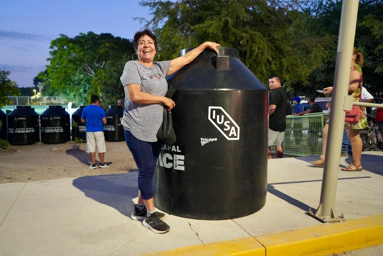 Durante la tarde, decenas de familias se reunieron para recibir este apoyo que mejora su capacidad de almacenamiento de agua y su calidad de vida, en una jornada en la que se distribuyeron 300 tinacos a habitantes de El Progreso y colonias vecinas de la delegación El Pitillal, beneficiando directamente a 1,200 personas.