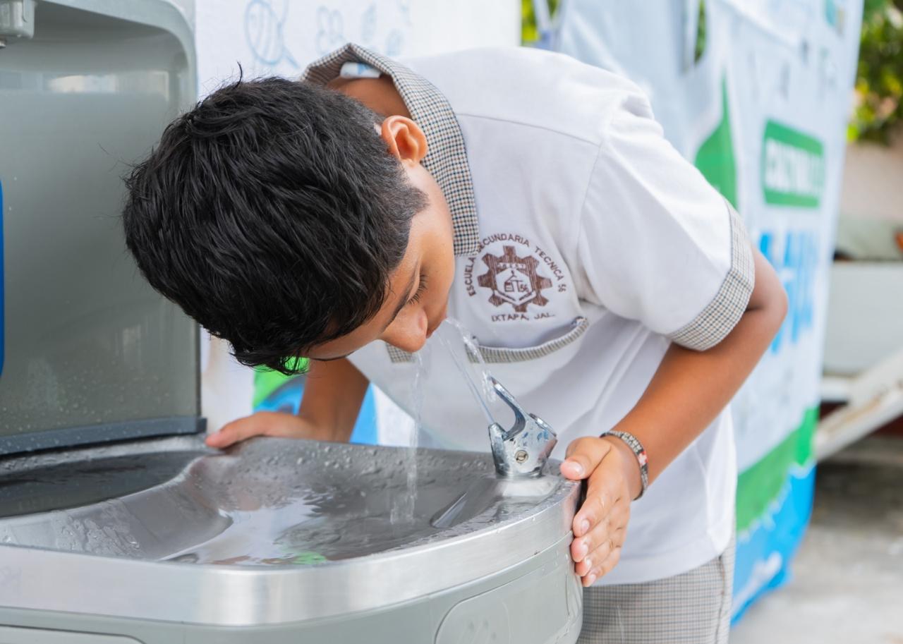 El esfuerzo social también ha llegado a las escuelas con la reactivación del programa Bebederos Escolares que ya inauguró el primero de 300 que serán instalados en planteles del municipio, el cual cuenta con una novedosa evolución en su infraestructura, para que niñas, niños y jóvenes tengan acceso a agua potable de calidad durante su jornada escolar, fortaleciendo la salud y fomentando hábitos de consumo responsable desde temprana edad.