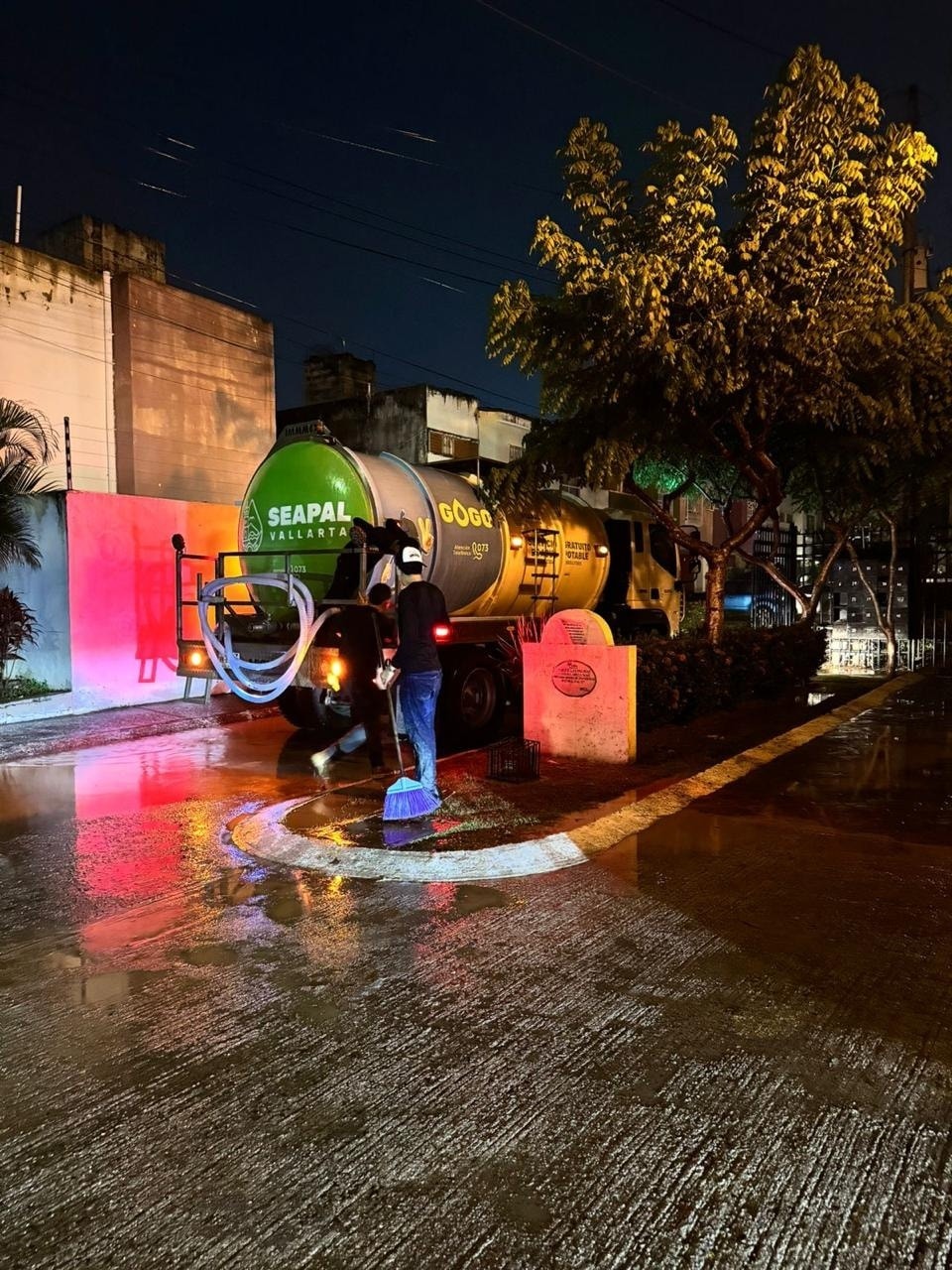SEAPAL Vallarta apoyó en las labores de limpieza en la colonia Parque Las Palmas, tras la intensa lluvia registrada la noche del sábado y madrugada del domingo, que dejó afectaciones en diversas zonas del municipio.